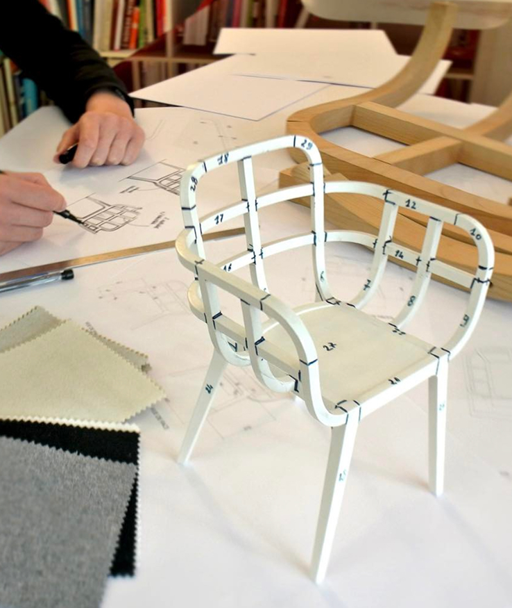 Habituellement les designers sont sollicités par la maison d’édition qui ensuite fait appel au fabricant, dans notre cas la dynamique est différente : des créateurs et fabricants prennent en main leur destin autour d’une vision commune et d’un fond de collection comme tremplin.