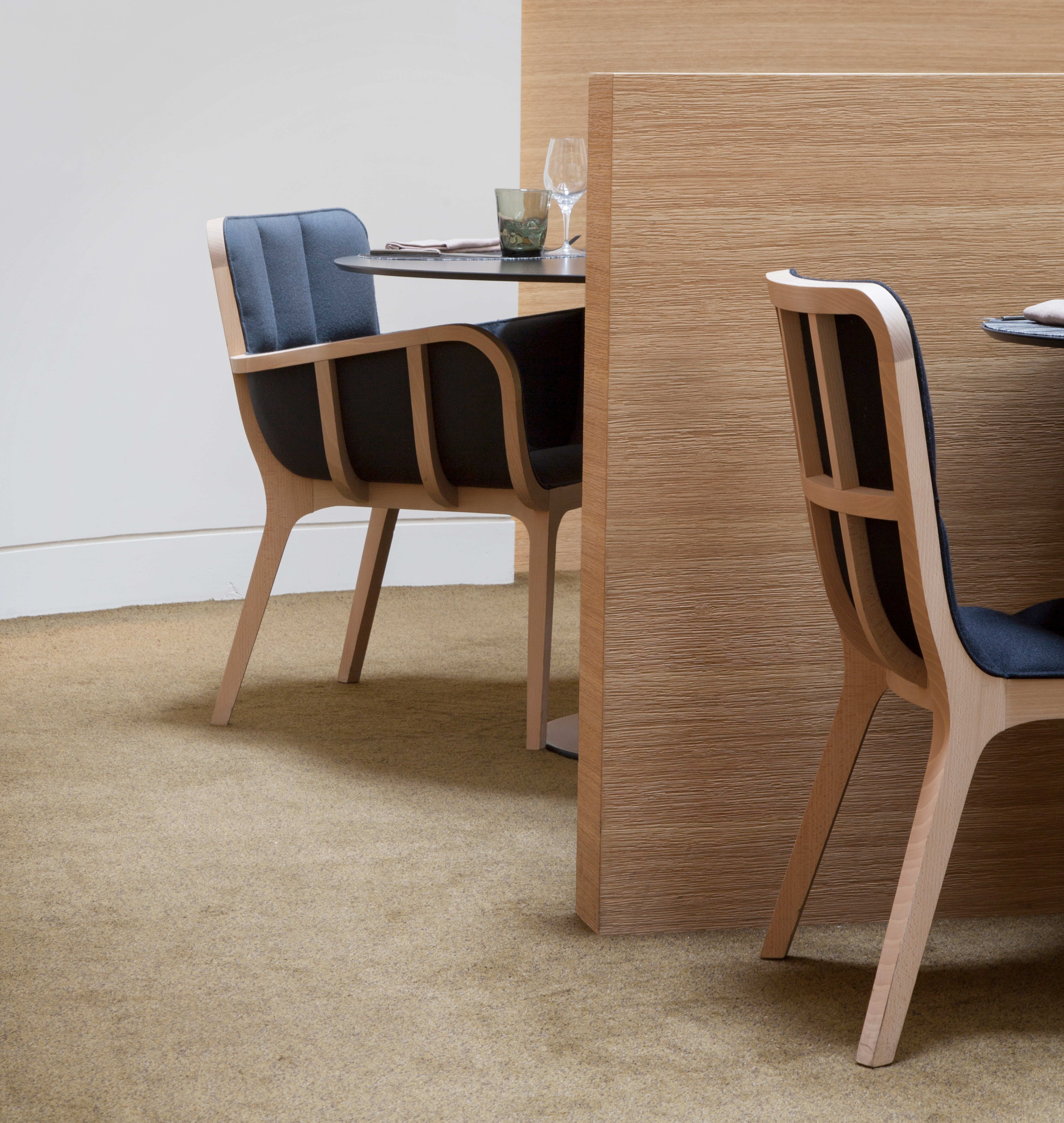 La chauffeuse Kago offre une assise large et confortable, pensée pour les zones d’attente, salons d’hôtels et espaces collaboratifs.