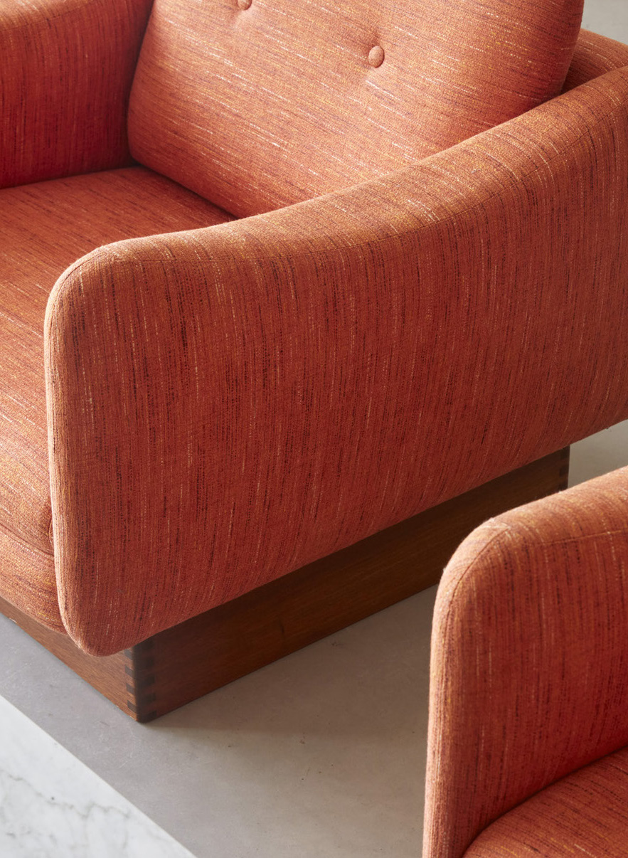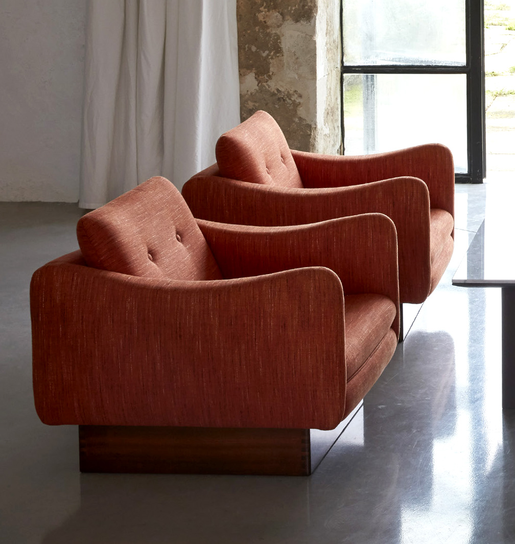 Le fauteuil Teckel réinterprète le modèle original des années 60 avec ses lignes basses, son dossier incurvé et ses accotoirs profilés inspirés du dos d’un teckel.